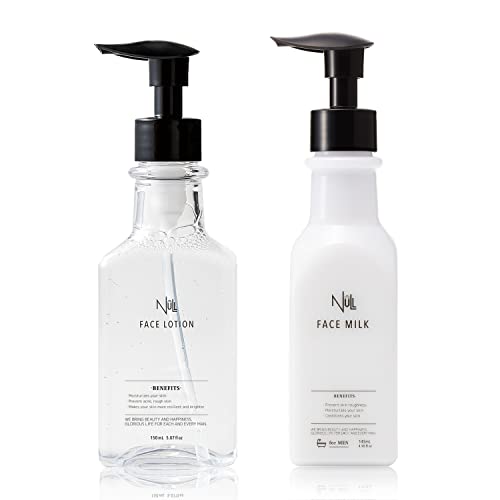 NULL メンズ化粧水と乳液の2ステップセット。ニキビ、肌荒れ、乾燥に対応し、さっぱりした使用感。化粧水150mLと乳液145mLで、日々のスキンケアに最適です。