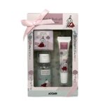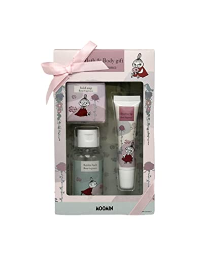 ほんやら堂のムーミンローズバス&ボディケアギフトは、ピンクの可愛らしいデザインで、約W18×D11×H4.5cmのサイズです。バス&ボディケアアイテムがセットになっており、贈り物や自分へのご褒美に最適です。