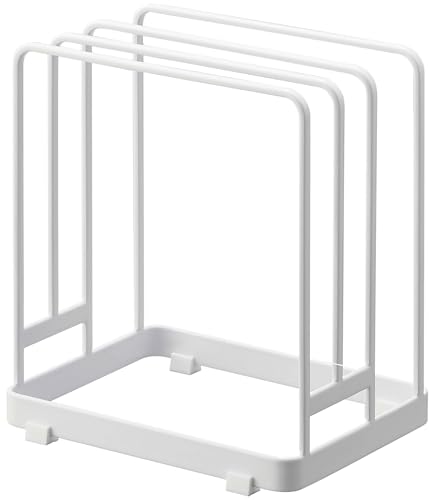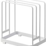 山崎実業の丸いまな板スタンドは、約W16×D11.8×H17.5cmのサイズで、ホワイトカラーの置き型タイプ。まな板をしっかり立てて収納でき、キッチンをスッキリ整理する便利なアイテムです。