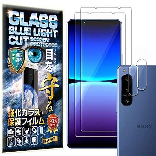 【ブルーライトカット 93%】【2枚+2枚】【RISE】ガラスフィルム カメラ レンズ フィルム Xperia5 iv SO-54C / SOG09 (xperia5 4) エクスペリア 用 保護フィルム 強化 ガラス 高透過 高光沢 日本製 旭硝子 硬度9H 2.5Dラウンドエッジ 自動吸着 気泡ゼロ 飛散防止 指紋防止 撥水撥油 3D タッチ For Xperia5 iv 高価買取中