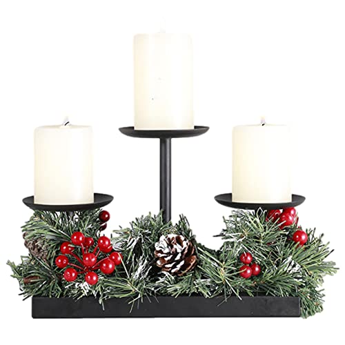 クリスマスキャンドルスティック。松ぼっくりとレッドベリーを使ったおしゃれなテーブルセンターピース。2個入り、3ヘッドで、季節のデコレーションやパーティーに最適。
