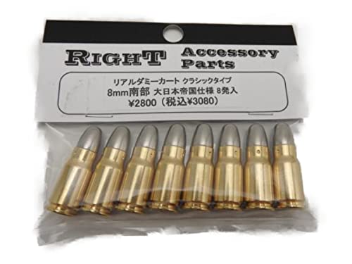 RIGHT カートリッジ TOP Japanのリアル ダミーカート8mm南部弾は、銀色弾頭の十四年式拳銃用で、8発入り。大日本帝国仕様のモデルガンで、エアガンとしても使用可能な商品です。