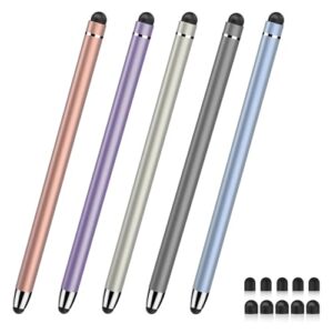 StylusLink タッチペン(5本) 2in1スタイラスペン 高感度 高精度 タブレット タッチペン ツムツム iphone iPad Android タブレット(pc) Samsung Galaxy Microsoft Surface スマートフォン 対応 たっちぺん イラストゲーム スマホ ペン(ブルー/ピンク/パープル/ログレー/シルバー) (5*シリコンペン)