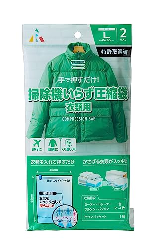 アール(R) 圧縮袋 Lサイズ45×65cmの2枚セットです。衣類や布団などをコンパクトに収納でき、スペースを有効活用。防水・防ホコリ効果もあり、様々な用途に対応します。