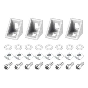 uxcell インサイドコーナーブラケットガセットキット 20x20x17 mm 2020アングルコネクタ ヨーロッパ2020シリーズアルミニウムプロファイル用 シルバー 8 x Tスロットナット & 六角穴付きボルト & ワッシャー 4セット