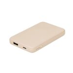 オウルテックの5000mAhモバイルバッテリーは、小型・軽量・薄型で、USB Type-Cポートを備え、知能的にデバイスを充電します。iPhoneやタブレットに対応。低電圧モードもあり、サンドベージュのデザインです。
