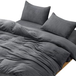 アイリスオーヤマの寝具カバー3点セット(セミダブル)。パイル織タオル生地の掛け布団カバー、ボックスシーツ、43×63cmの枕カバーが含まれ、ダークグレー色でおしゃれな寝室を演出します。