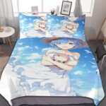 レム Re:ゼロから始める異世界生活の布団カバー3点セット。シングルサイズ、シーツ付きで、洋式和式兼用。キャラクターグッズとして枕カバーも含まれています。サイズは約102インチ×90インチ。