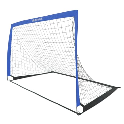 REFREEZE 折りたたみサッカーゴールは、収納バッグ付きで室内外兼用のポータブルタイプです。サイズは200×130cmで、持ち運び時に組立・分解が必要です。