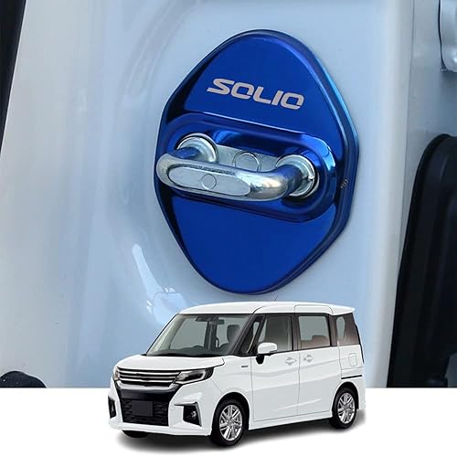 Kakashのステンレスドアロックカバーは、スズキ新型ソリオ(MA27S/MA37S/MA07系)専用設計で、傷防止や防塵効果があります。取り付けも簡単で、スタイリッシュなブルーの仕上げが施されています。