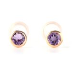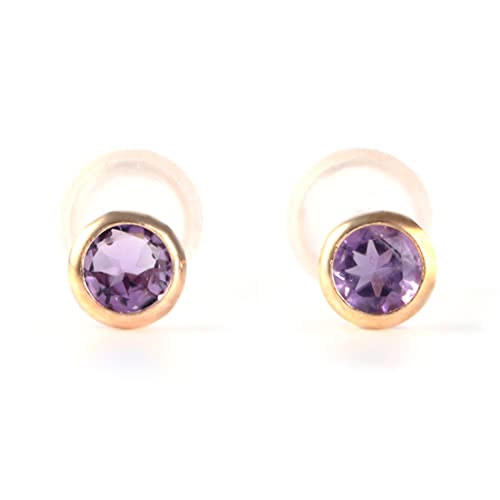 PLUSTERのアメシストピアスは、天然石を使用し、フクリンデザインが特徴。K10 YG製で、誕生石としても人気。ニッケルフリーで金属アレルギーに対応。専用ポーチ付きで、プレゼントにも最適。