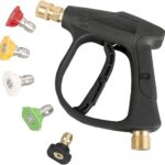 YUET 高圧洗浄機ガンは4350 PSIの性能を持ち、5個のスプレーノズルが付属。1/4インチクイックリリースとM22メトリックスレッド接続に対応し、カークリーニングに最適なツールです。