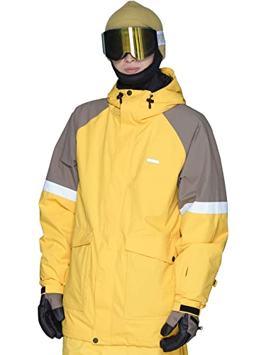 PONTAPES スノーボードウェア メンズレディースジャケット。耐水圧20,000mmのカーゴジャケット。全5色、サイズXS-XXL。Kイエロー Lサイズ。スノボ、スキーに最適。