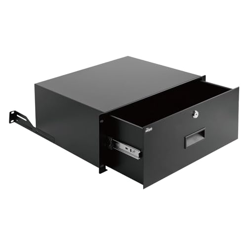 Tecmojo 4Uのロックラックマウント引き出しは、22ポンド(10kg)のロック可能なスチール製で、19インチのネットワーク機器やサーバー用に最適です。