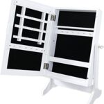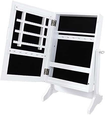 収納スタンドミラーは、ジュエリーやアクセサリーを整理できる収納付きの鏡です。卓上型で、美しいホワイトデザイン。ドレッサーや化粧スペースに最適なアイテムです。