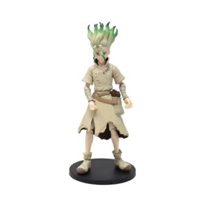 Boss Fight Studio Dr.Stone Senku アクションフィギュア – 交互の頭と手、ラーメン、六分儀、斧、ボトル、フラスコなどのアクセサリー付きの高関節コレクターフィギュア – 4インチのスケール