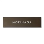 表札AKIグラスショップは、金属やレザー調のテクスチャが特徴の日本製長方形表札です。機能門柱におしゃれに貼付け可能で、カラーはマットダークブラウンです。戸建てに最適。