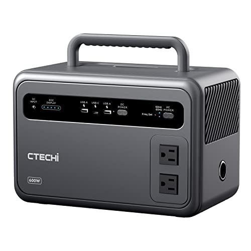 CTECHi ポータブル電源は、600Wの出力と384Wh/120000mAhの大容量を持つリン酸鉄リチウムイオンバッテリー。小型軽量で、AC/DC/USB出力、ソーラーパネル充電も可能。非常用やキャンプに最適。