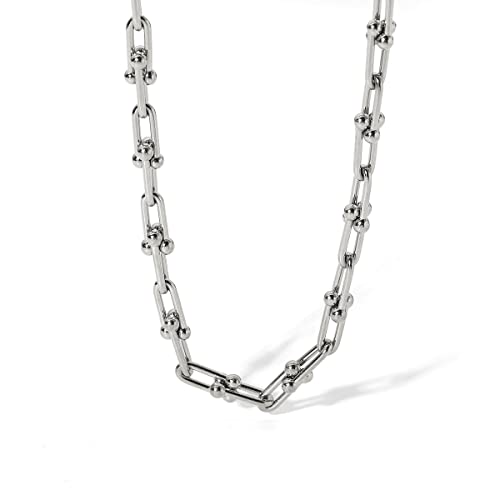 LUXSTARのUリンクチェーンネックレスは、金属アレルギー対応のステンレス製で、美しいシルバー色。シンプルでありながら洗練されたデザインが魅力の女性向けアクセサリーです。