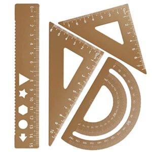 Kemxingの4個セット、几何学的定規と金属製分度器、アルミ合金製でまっすぐなデザイン。学校や家庭で使える測定ツール。収納ボックス付き。カラー: ピンク。