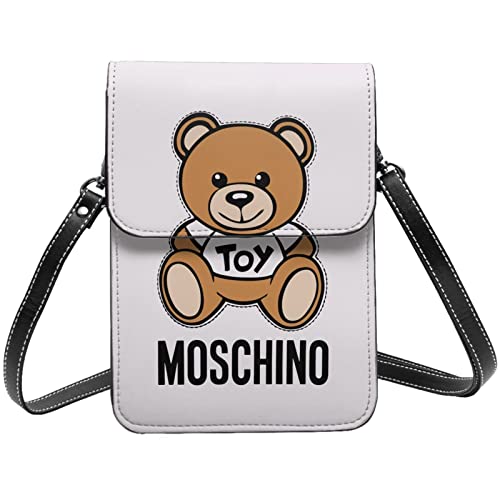 モスキーノのサングラス付き携帯電話バッグは、防水で軽量のアニメキャラクター柄。カード収納も可能で、レディース・メンズ兼用のメッセンジャーバッグです。