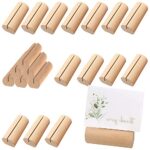 木製カードスタンド20個セット。おしゃれな円柱形デザインで、メモクリップや名刺ホルダー、写真立てとしても使用可能。結婚式やオフィスでの座席指定、文房具として最適です。