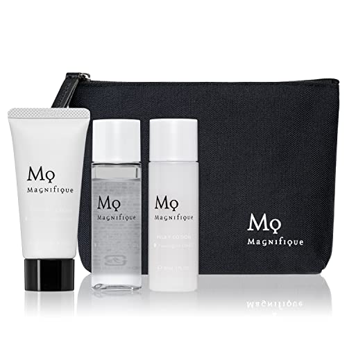 マニフィーク メンズ スキンケア トライアルセットは、洗顔フォーム30g、化粧水30mL、乳液30mLの3点が揃ったセット。さらにMQポーチ付きで、コーセーの高品質な製品を手軽に試せます。