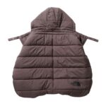 ザノースフェイスのベビーシェルブランケットは、ユニセックスデザインで抱っこ紐やベビーカーに装着可能。撥水加工で保温性も高く、寒い季節のお出かけに最適。フリーサイズで使いやすいスレートブラウン。