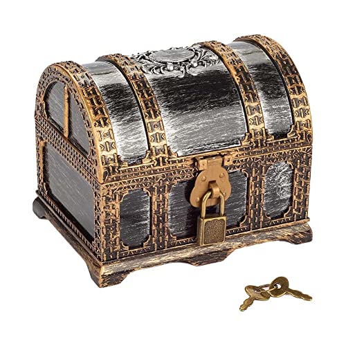 Jinmoioyのアンティーク調合金製宝箱は、海賊テーマのデザインで小物入れやアクセサリー収納に最適です。ヴィンテージインテリアにも合い、雑貨としても楽しめるアイテムです。
