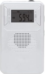 オーム電機AudioComm AM/FMポケットラジオRAD-P212S-Sは、電池長持ちタイプのコンパクトラジオです。シルバーのデザインで、持ち運びに便利なポータブル仕様。