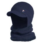 目出し帽と耳当てが一体となった防寒・防風帽子。アウトドアやスポーツに最適で、裏起毛で暖かく、伸縮性もあり。メンズ用ツバ付きキャップ、サイズ56-60cm。