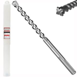 Keewaki 1インチ x 13インチ SDS Maxクロスチップロータリーハンマードリルビット – アップグレードされた熱処理された超硬ヘッド、より長い作業深さのための延長長さ340mm、石材、レンガ、石用のコンクリートドリルビット