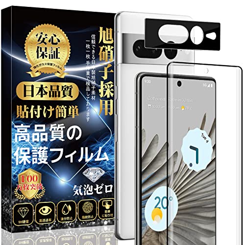 Google Pixel 7 Pro用のガラスフィルム1枚とカメラフィルム1枚。旭硝子素材で硬度9H、貼り付け簡単な自動吸着。気泡防止、撥水撥油、指紋・飛散防止機能付き。