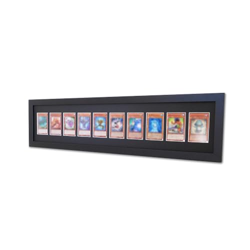 日本製の木製トレカ額縁で、10枚のトレーディングカードを収納可能。カードサイズは63×88mmまたは59×86mm。UVカットアクリル板使用、壁掛け・立て掛け両用。工具不要で簡単に設置できます。