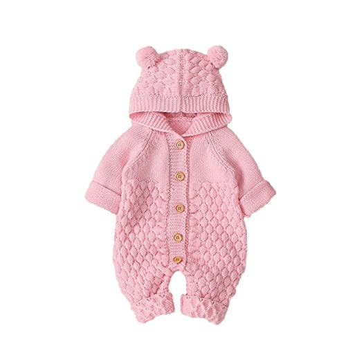 [B-TOPAZ] ベビー服 ロンパース カバーオール 男の子 女の子 ベビー 足つき 長袖 ニット おくるみ 前開き ロンパース 赤ちゃん 新生児 防寒 フード付き アウター ベビー用品 可愛い 出産祝い (70, ピンク) 高価買取中