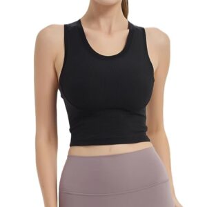 [IRCOLVE] ヨガウェア トップス カップ付き スポーツブラ 揺れない レディース ヨガ ブラトップ ノンワイヤー カップ付きタンクトップ 吸汗速乾 通気防臭(black,m)