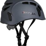 この登山用クライミングヘルメットは高強度で通気性があり、安全性を提供します。頭部をしっかりと保護し、快適なフィット感を持つグレーの防護帽です。