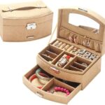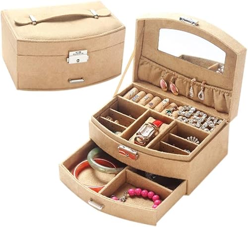宝石箱 ジュエリーボックス 取っ手が付き 携帯 鍵付き すべて収納 鏡付き 大容量 時計収納 引出し ネックレス 指輪 アクセサリーケース 持ち運びにも便利 収納ケース コスメボックス 2段タイプ 20*15.5*10cm コンパクト きれいに (ベージュ) 高価買取中