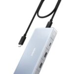Anker 575 USB-Cハブは、12-in-1機能で、Dual HDMI、DP、最大100W USB PD対応。3画面出力、4K HDMI、10Gbpsデータ転送、SD/microSDスロット、イーサネットポートなどが搭載されています。