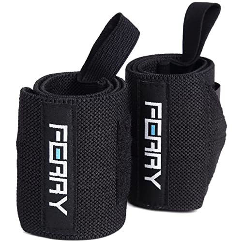 FERRYリストラップはウエイトトレーニング用の手首固定具で、2枚組のブラックカラー。高強度トレーニングでも手首をしっかりサポートし、安心して運動に集中できます。