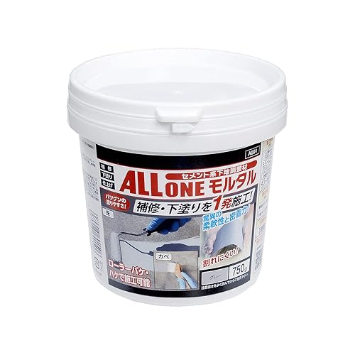アサヒペンのオールワンモルタル750gは、グレーのセメント系補修材です。下地調整材としても使用でき、柔軟で割れにくい特性があります。屋内外のコンクリートやモルタルに適し、日本製です。