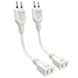 KOZUMUWAN 延長コード 屋内用 電源タップ ACアダプタ用電源延長コード 1個口 ホワイト ト 頑丈コード ラッキング火災予防絶縁キャップ付きスイングプラグ フリープラグ 180度回転プラグ 2ピンプラグ接続可能 メス オス 2本入り (50cm, ホワイト)