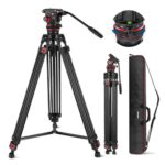 NEEWER 189cm プロビデオ三脚はフルード雲台付きで、全金属製、高耐久性。最大荷重22lb(10kg)、DJI RSジンバルと互換性あり。360°パン&90°/-75°チルト、調節可能なダンピング機能付き。