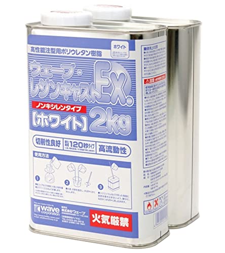 ウェーブ レジンキャストEX 2kgは、ノンキシレンのホワイト色のホビー用素材です。透明感と強度があり、初心者にも扱いやすい特性を持っています。模型制作や自作アクセサリーに最適です。