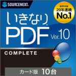 ソースネクストのいきなりPDF Ver.10 COMPLETE(法人向け)は、10台用のPDF作成・編集・変換ソフト。Windowsに対応し、業務効率を向上させる機能が充実しています。