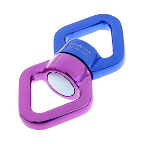 スイベルロープコネクタは、ボールベアリングギアでスムーズに回転し、スピニングカラビナやフープアタッチメントとして使えます。ブルーとパープルのデザインで、ハードウェアアクセサリとして便利です。