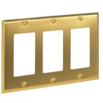Rio Saltoのメタルゴールドトリプルライトスイッチウォールプレートは、耐腐食性で、3ギャング標準サイズ、つや消し真鍮仕上げ、サイズは6.3インチ x 4.3インチです。