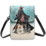 魔法使いの嫁デザインの携帯電話バッグ。ショルダーバッグとしても使用可能。スマートフォンやカードケースが収納でき、防水・軽量素材で作られたアニメキャラクターのレザー製品です。男女共用。