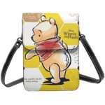 くまのプーさんデザインのショルダーバッグ。スマートフォンやカード収納可能。防水&軽量で、男女兼用。アニメキャラクター好きにおすすめのレザー製。