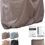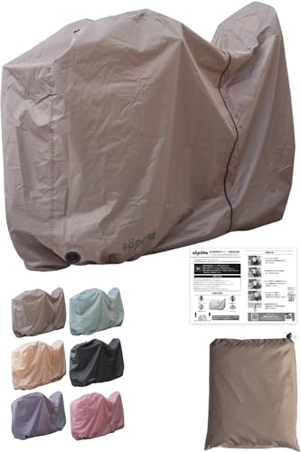 söpöta 自転車カバーは、子供乗せ対応の防水性を備え、厚手の250D素材で作られています。横開きデザインで使いやすく、ハイバック仕様のブラウンカラーはおしゃれです。